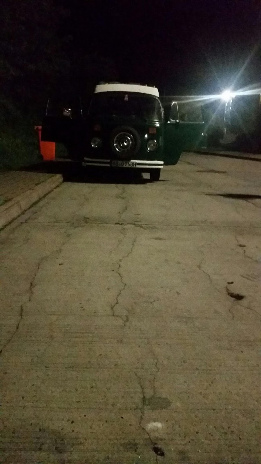 .... nachts. Das Navi zeigt 520 km. Die trennen uns vom Turnfest und unserem Campingplatz. Um halb eins geht es los. Die Strassen sind frei und nur die fiesen Anstiege deutscher Mittelgebirge quälen den Bulli. Wir übernachten auf einem Stellplatz bei Weimar und geben uns 3 Stunden Schlaf.